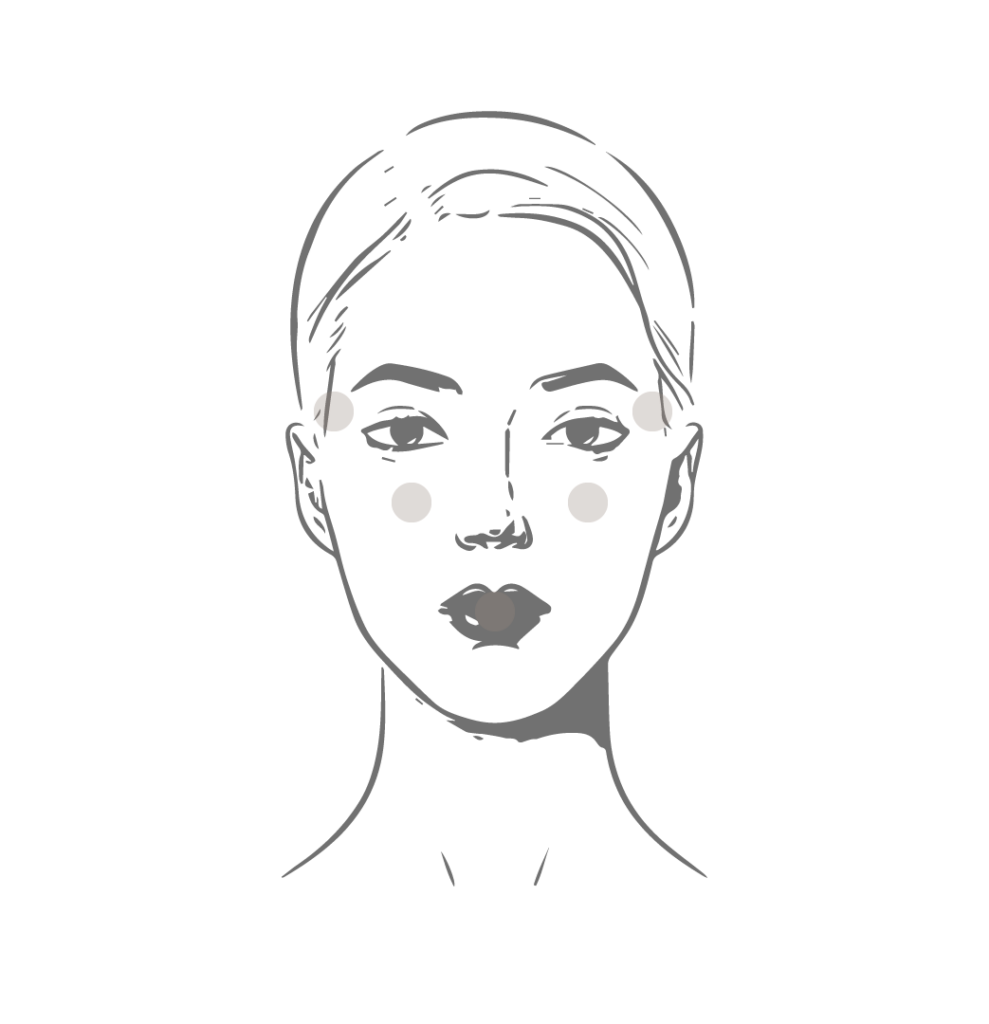 額頭、蘋果肌、木偶紋、豐唇、法令紋