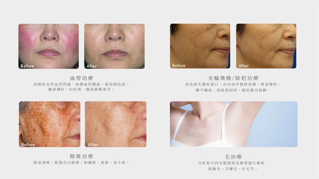 1. 「Nordlys 魔幻極光」可以改善皮膚泛紅、微血管絲、紅痘疤等血管性問題,以及曬斑、雀斑、老人斑、暗沉膚色不均及腋毛、手腳毛、汗毛等部位除毛。