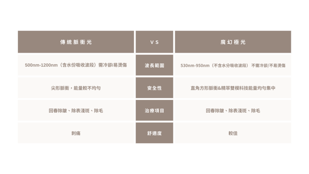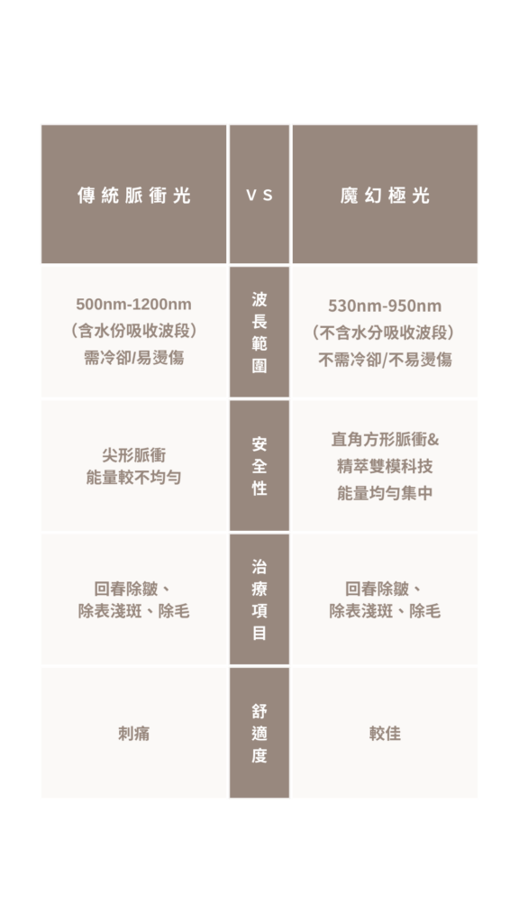 2.目前市面上大宗的雷射機種,大多擅長對應黑色素沈澱等適應症,過往脈衝光較能處理的範圍包括表淺斑點、皮膚暗沉、皮膚粗糙、毛孔粗大等問題。